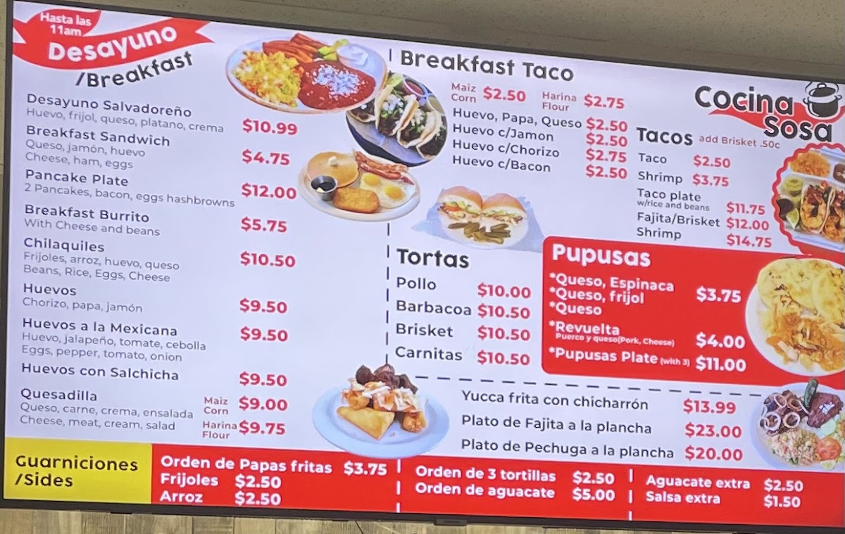 For breakfast or a comforting meal, the Pancake Plate is a perfect choice, featuring fluffy pancakes served with all the classic sides. If you prefer a more savory breakfast, the English Breakfast offers a filling selection of eggs, beans, sausage, and more. The Fajita Corn Tacos are another must-try, with sizzling fajita-style meat served in crispy corn tortillas. The Huarache, a thick, oval-shaped tortilla topped with meat, beans, and fresh toppings, is a hearty and delicious option that shouldn't be missed.