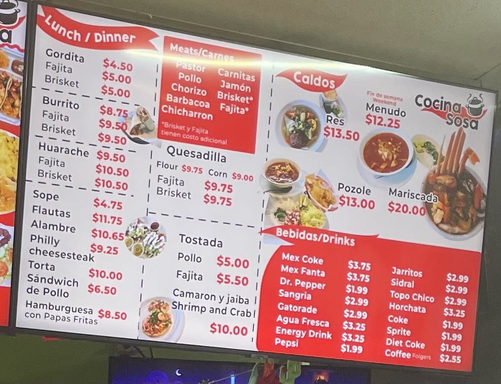 Other options on the menu include the Pad Thai, a flavorful stir-fry that combines savory, sweet, and tangy notes, and the Chicken Sandwich, a hearty and satisfying choice for those who prefer a lighter meal. The Gordita and Sope are both traditional Mexican dishes, offering thick, soft tortillas topped with flavorful meats, cheese, and toppings. The Taquito and Tacos Dorados provide a crispy and savory bite for those craving something crunchy.
